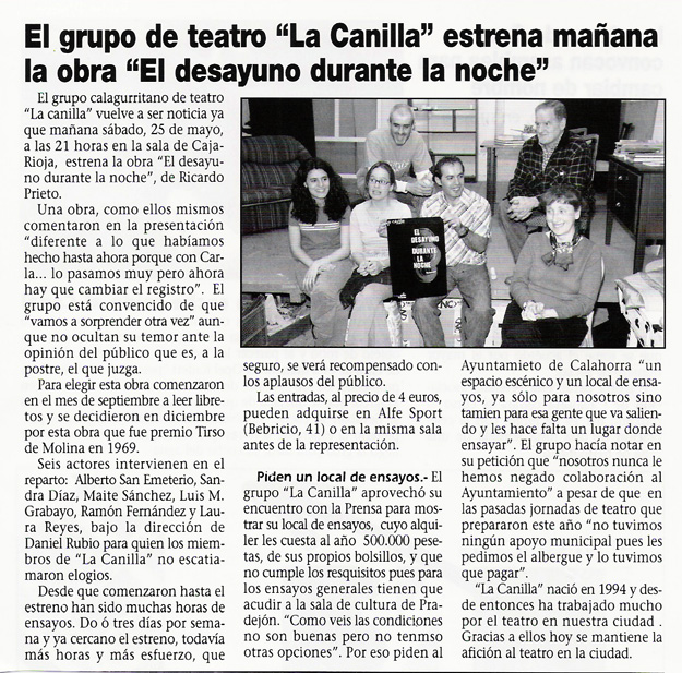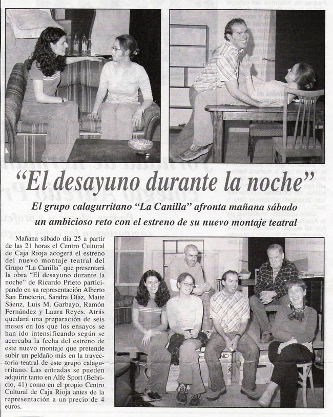 El Grupo de teatro "La Canill" estrena mañana la obra "El desayuno durante la noche" |